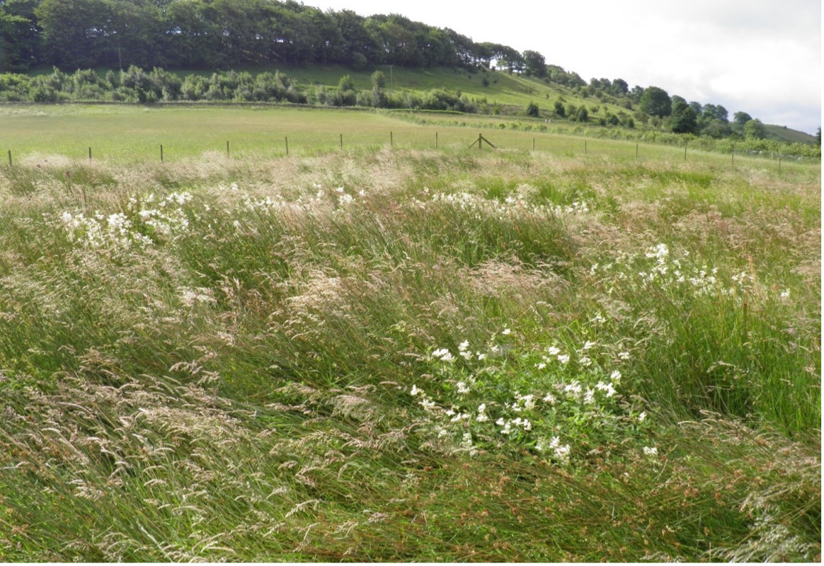 The wildflowers and grasses in the hay meadows (Fields 1 and 2) and in the wetter area, Field 6, were surveyed in July 2011, 2015 and 2017 by different well qualified biologists. In total they identified 75 different species of wildflowers and grasses in these three fields. Additional varieties of wildflowers have been noted at other times of year and on other parts of the site.